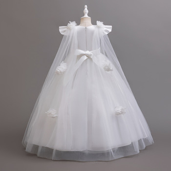 Elegante manica volante formale natale bianco fiore ragazza abiti per bambini festa adolescente abito di compleanno principessa bambina abiti